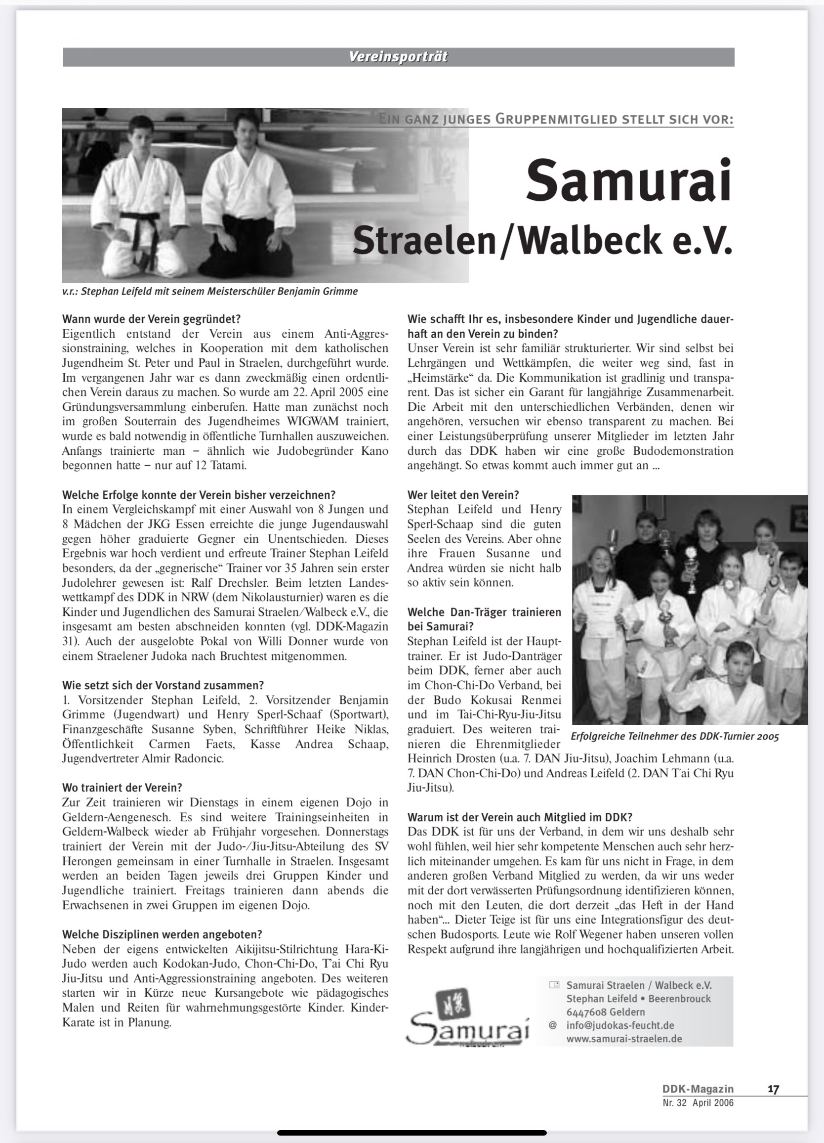 *Ein Fachverband, der nicht nur den Sportverkehr auf seinen Fahnen hat, sondern eben auch die handlungsorientierte Gewaltprävention. Die WJF - World Judo Federation als internationale Organisation pflegt dabei das traditionelle Judo, die ISA das traditionelle Budo in ihrer Gesamtheit.